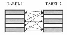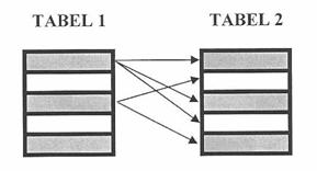 O relatie intre tabele dintr-o pereche este stabilita in mod implicit prin intermediul valorilor echivalente ale unui camp comun.