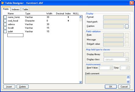 Fig. 9 – Structura tabelei furnizori