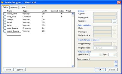 Fig. 10 – Structura tabelei Clienti