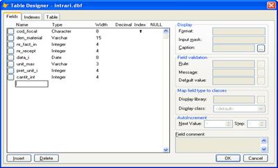 Fig. 11 – Structura tabelei Intrari