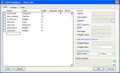 Fig. 12 – Structura tabelei Iesiri