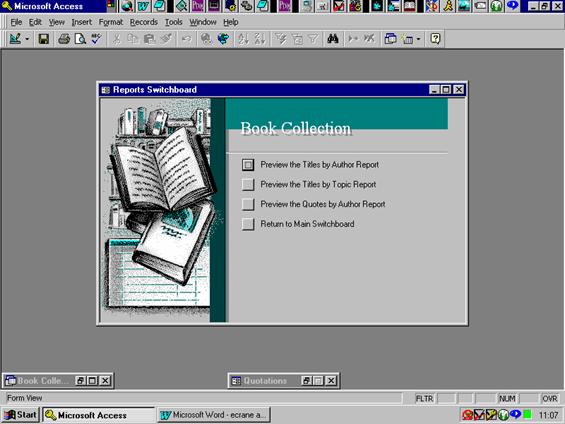 menu din care putem alege ce sa facem cu baza de date. Cel din ecranul 13 este meniul principal Main Switchboard si butoanele succesiv apasate ne duc in submeniuri ca in ecranele 14 si 17, fie ne dau posibilitatea sa facem operatii asupra bazei de date. Ce operatii se pot face?