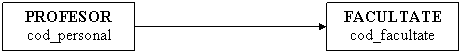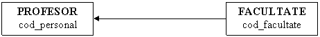 PROFESOR (cod_personal, grad_didactic, titlu, sef, ore_predare, cod_facultate)