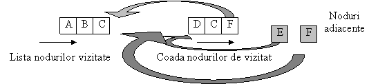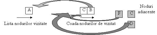Pasul 3. Se repeta pâna când nodul destinatie se afla în L. Sunt analizate nodurile grafului care nu sunt în lista L:
