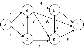 Pentru a exemplifica metoda, se aplica algoritmul lui Dijkstra pentru a calcula drumul minim de la nodul A la nodul F, noduri ce apartin grafului din figura 13.