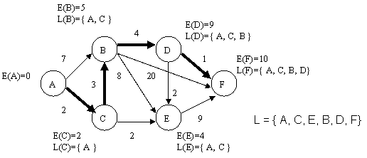 Se fac notatiile ajutatoare : E(Ni) reprezinta valoarea etichetei nodului Ni; L(Ni) reprezinta lista nodurilor prin care s-a ajuns la nodul Ni; L reprezinta lista nodurilor care au fost luate în considerare.