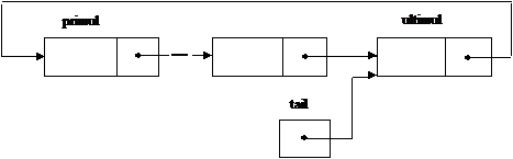 Exista aici un element de redundanta: ar fi convenabil sa nu mai avem spatiu suplimentar de memorare, ci, sa avem un singur pointer ca sa putem manevra coada. De aceea apar utile cozile inlantuite circulare.