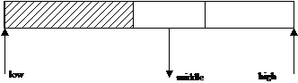 Fie A, de ordin n, un vector ordonat crescator. Se cere sa se determine daca o valoare b se afla printre elementele vectorului. Limita inferioara se numeste low, limita superioara se numeste high, iar mijlocul virtual al vectorului, mid (de la middle).
