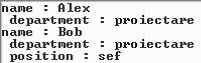 Se vor crea obiecte cu angajati si manageri si se vor afisa datele acestora (numele, departamentul si pozitia manageriala). Programul de rezolvare a problemei este prezentat mai jos.