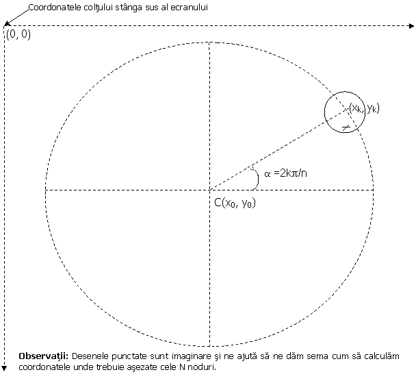 Determinarea modului de a plasa N noduri in varful unui poligon regulat este ilustrata in figura de mai jos.