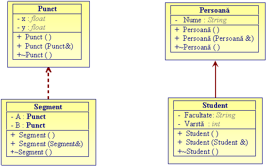 UML specifica entitatile (clasele) dintr-un program si relatiile dintre ele astfel: