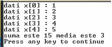 Problema 8. Se da un sir de 5 numere. Sa se scrie un program care sa calculeze suma si media termenilor sirului. Valorile termenilor sirului se vor citi de la tastatura. Programul este cel de mai jos.