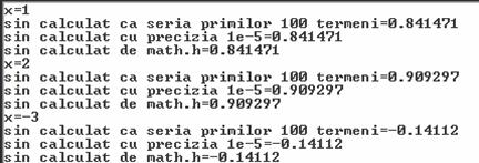 x=-3, x=10, x=20, x=-30. Se va afisa si valoarea calculata cu functia de