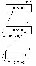 unde Ti, reprezinta tipul variabilei referite si pointer este tipul specific, fundamental al variabilei. Daca variabila care refera px, este de tip Tp si variabila referita x, este de tip Ti, în vorbirea curenta, expresia (pointer) se interpreteaza, pornind de la efectul fizic al operatiilor cu pointeri, ca pointer spre Ti.