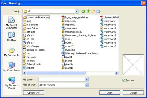 Stabilirea formatului de deschidere a imaginii Optiunea All formats afiseaza toate formatele documentelor, afisand deci toate documentele din fisierul deschis. |