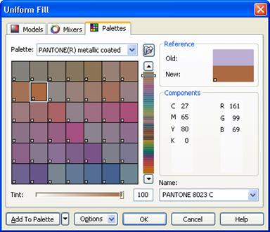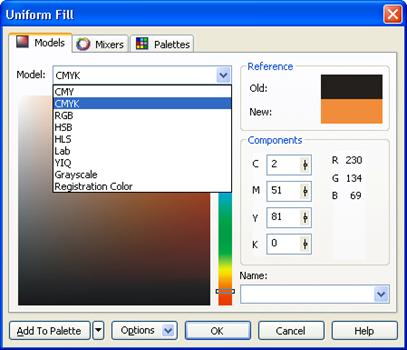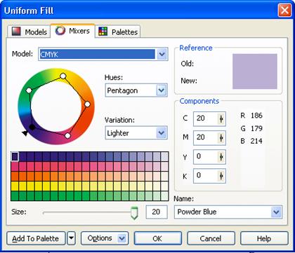 Fereastra pentru umplere uniforma (Shift+F11) pune la dispozitia utilizatorului posibilitatea de a alege intre gamele de culori sau intre codurile de culori. Fiecare cu 424h72e loare are un cod care este definit in functie de grupa culorilor din care face parte. In urmatoarele ferestre se vor exemplifica astfel de situatii: