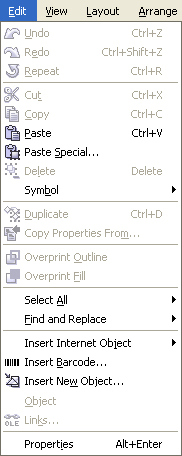 Acest meniu se ocupa cu elementele cele mai uzuale pentru orice tip de document. Aceste comenzi se regasesc si in alte programe (cum ar fi: Undo, Copy, Paste) dar sunt cateva comenzi specifice acestei aplicatii.