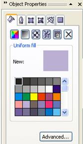 d) Properties reprezinta o fereastra care pune la dipozitia utilizatorului informatii cu privire la obiectul selectionat: culoare, linie, dimensiune, caracteristici, detalii. De asmenea se permite prin intermediul acestei ferestre modificarea proprietatilor obiectului prin ferestrele aleatorii care pot fi accesate: fereastra de umplere (cu culoare), fereastra pentru linie, proprietati generale, fereastra pentru detalii, fereastra pentru acesarea Internetului, fereastra care defineste forma obiectului.