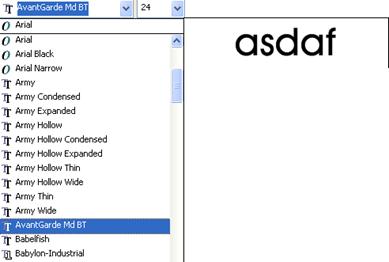 tipului de font aplicat asupra unui fragment de text selectionat. |