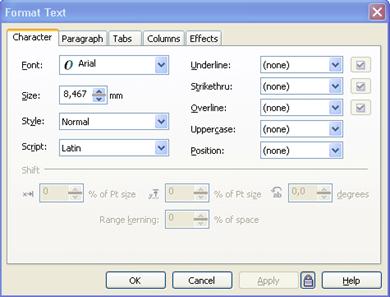 casuta poate fi deschisa si pe calea Text – Format Text sau formand combinatia de taste Ctrl+T. Este foarte important de