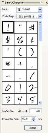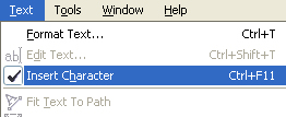 Se pot insera diferite caractere: Text – Insert Character (Ctrl+F11).