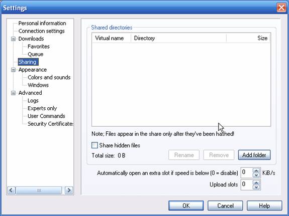 Nota: Nu puneti in share Program Files sau Windows. Pe hub-ul Planet share-ul trebuie sa fie de cel putin 5 Gb, si upload slots sa fie minim 5.