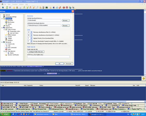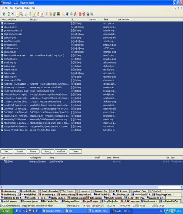 dupa ce ai facut toate astea trebuie sa cauti sau sa afli huburi din timisoara pentru ca eu am numai huburi din resita. Iti trimit lista pe care o am eu. Singurul hub care e pe toata tara si sunt si din timisoara este rdszone.no-ip.info:2500.