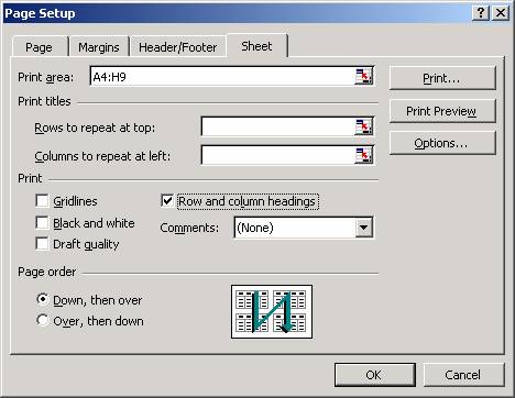 Executa secventa File/Page Setup si executa click pe fisa Sheet. Specifica sa fie tiparite etichetele de coloana si de rānd