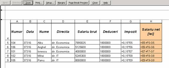 Executa click pe butonul Print Preview pentru a previzualiza aparitia etichetelor de coloana si de rānd.