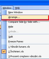 Este recomandat sa se utilizeze aceasta facilitate de aranjare a ferestrelor de lucru pentru cel mult trei foi de calcul deschise la un moment dat, pentru ca fiecare fereastra sa ofere spatiu suficient de vizualizare a datelor.