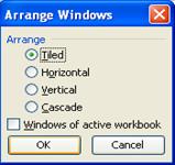 Tiled – va aranja si redimensiona foile de calcul deschise astfel incat acestea sa fie aranjate alaturat atat pe orizontala cat si pe verticala.