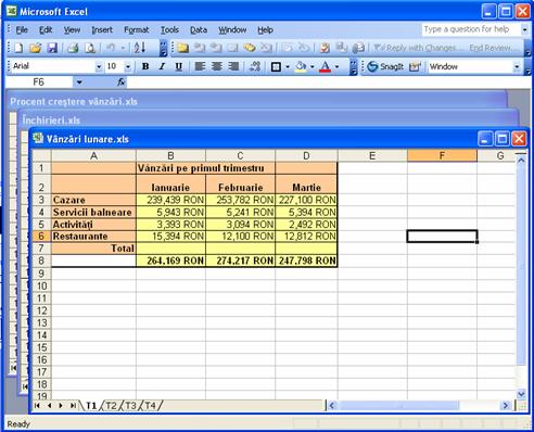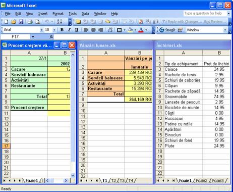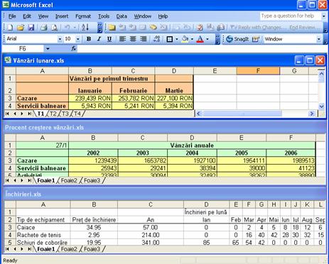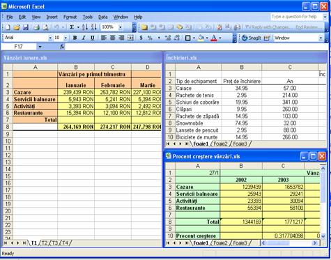 Se pot vizualiza, de asemenea, mai multe foi de calcul simultan, fiecare in propria fereastra.