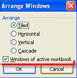 Figura MSExcel-Optiunea Windows of active workbook la aranjarea foilor de lucru