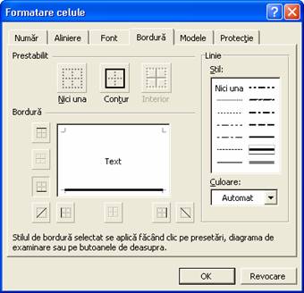 diverse tipuri se poate face cu ajutorul cāmpului Format Celule Bordura - vezi figura 7. Īn sectiunea Bordura