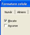 Se foloseste cāmpul Format Celule Protectie. Se va ajunge la caseta de dialog Format celule, sectiunea Protectie - vezi figura 16. Se anuleaza bifa din dreptul cāmpului Blocate.
