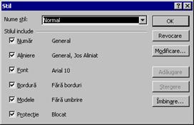 Pentru a sterge un stil particularizat, se selecteaza numele stilului din lista Nume stil si se face click pe stergere (stilul Normal nu poate fi sters).
