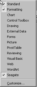 Excel va pune la dispozitie o multitudine de instrumente, care ofera acces imediat la multe dintre comenzile foii de calcul. Pentru a utiliza aceste instrumente, va trebui intai sa afisati pe ecran bara cu instrumente corespunz 535b17f atoare, adica cea in care se gaseste butonul asociat instrumentului respectiv. Pe ecran, in mod prestabilit, apar doar barele cu instrumente standard (Standard) si cea pentru formatare (Formatting).