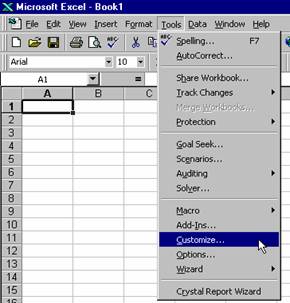 Pasul 2: Selectati optiunea Customize (sau selectati comanda Customize din meniul Tools);