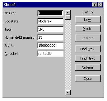 Meniul DATA FORM si din caseta aparuta selectam CRITERIA.Caseta se goleste si īn dreptul fiecarui cāmp introducem criteriile de selectie;