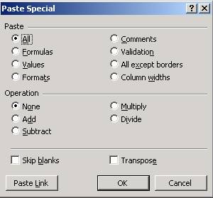 Atunci cand efectuezi lipirea unor elemente copiate aceasta se face impreuna cu formatele aplicate selectiei respective. Daca doresti sa nu se copieze decat valorile, sau numai formulele sau numai formatele, etc. atunci folosesti comanda Paste Special din meniul rapid sau din meniul Edit. In urma apelar 242h79c ii acestei comenzi se deschide o caseta de dialog cu urmatorul continut: