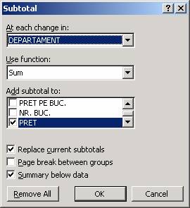 Pentru a renunta la subtotalurile create apasa butonul Remove All.