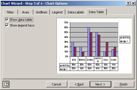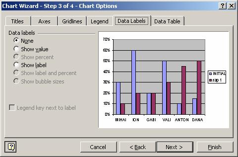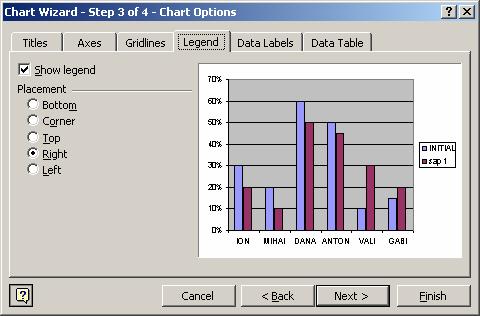 n Show legend – daca este bifata, iti permite sa afisezi legenda pentru o diagrama.