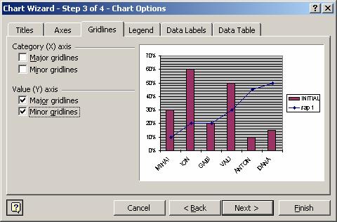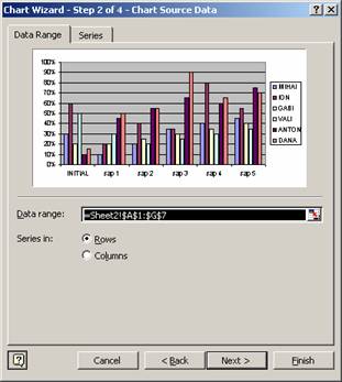 Pasul doi al aplicatiei Chart Wizard īti permite sa