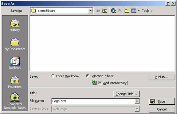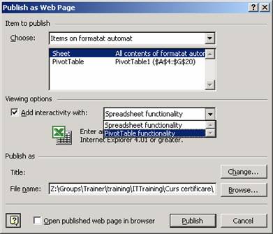 Pentru a salva un tabel pivot ca pagina Web trebuie sa parcurgi pasii: