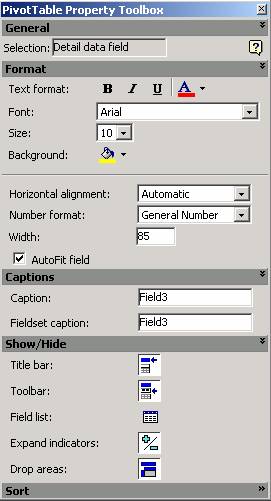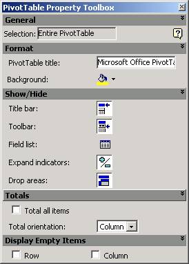 intranet. Continutul casetei Pivot Table Property Toolbox variaza
