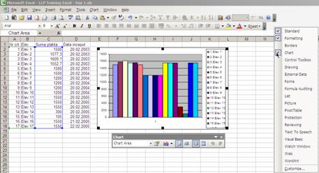 grafic se selecteaza zona de interes si se apasa butonul de Chart wizard de pe