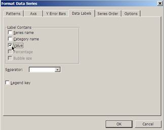 Se pot adauga si valori pe grafic prin bifarea campului Value din fereastra Format Data series.