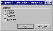 Se alege Editare Umplere În foile de lucru selectate (se afiseaza caseta de dialog Umplere în foile de lucru selectate