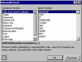c) Informatii - caseta mesaj va contine butoanele de comanda OK (memoreaza valoarea invalida în celula) si Revocare (reface valoarea anterioara a celulei).