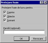 - caseta de control Scenarii - pentru ca alt utilizator sa nu poata modifica definituiile scenariilor din foaia de lucru.